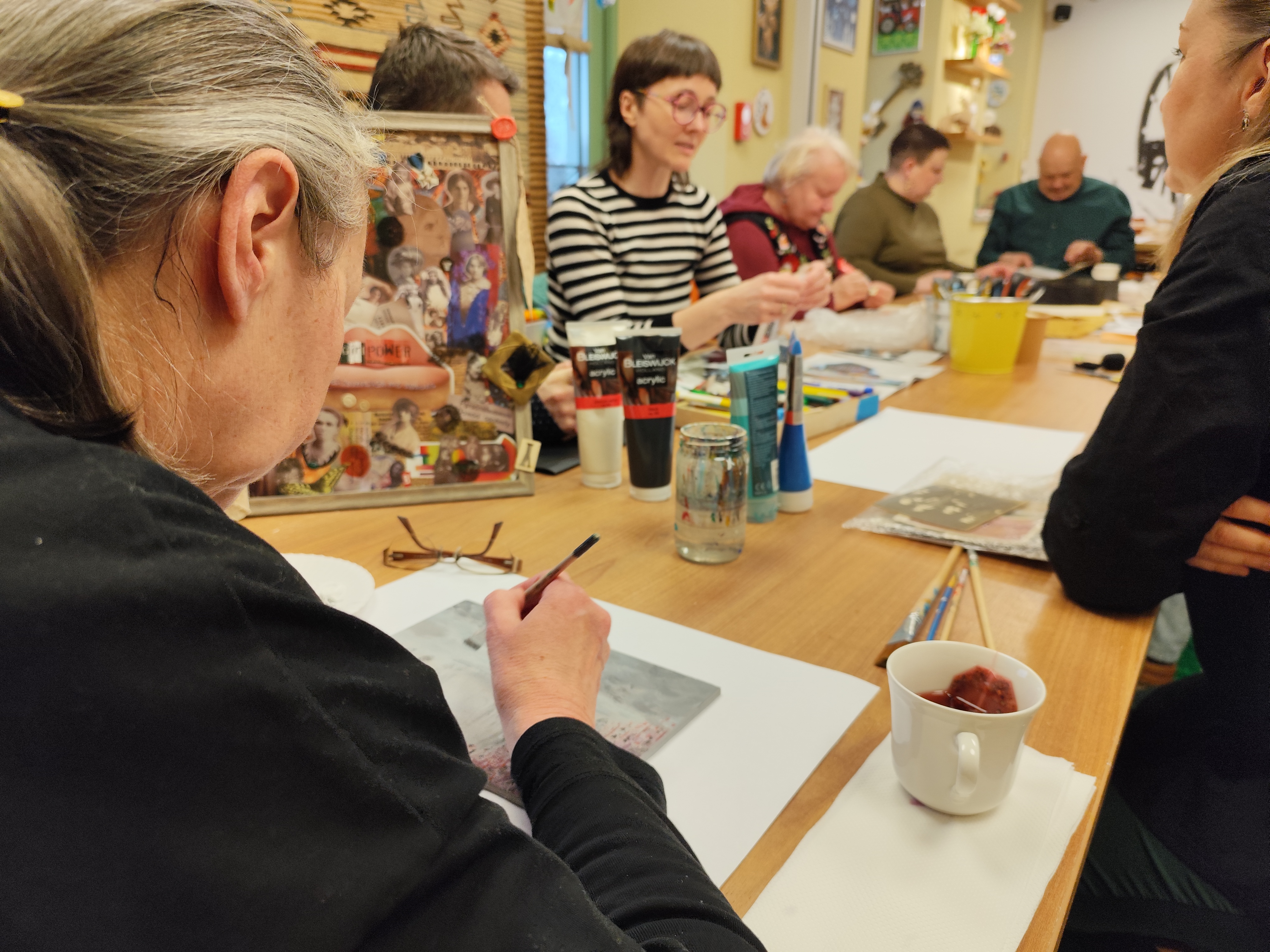 Część praktyczną, zaplanowaną w cyklu, a więc pracę warsztatową z materiałem rzeczowym poprowadził Adam Grudzień, pracownik Etnocentrum Ziemi Krośnieńskiej. Adam wskazywał uczestnikom sposoby kreatywnego przetwórstwa materiałów fotograficznych, scanów dokumentacji przodków, a także metody tworzenia spójnej kompozycji tworzonej pracy plastycznej. Uczestnicy w tej części spotkań realizowali swoje cele i zamierzenia, kierując się własną intuicją w zachowywaniu pamiątek oraz rodzinnych wspomnień.