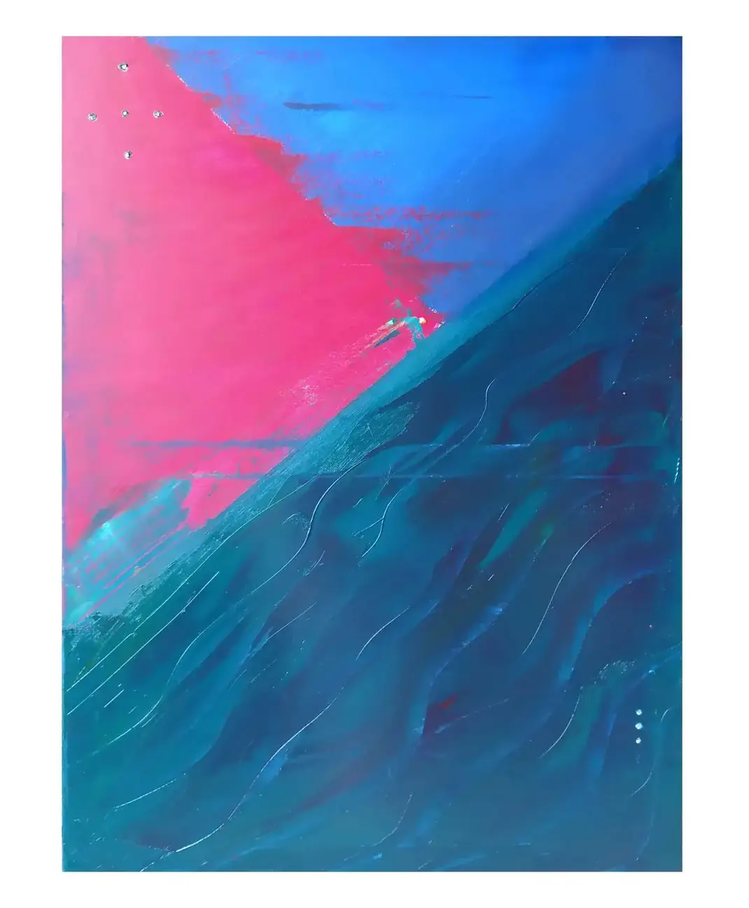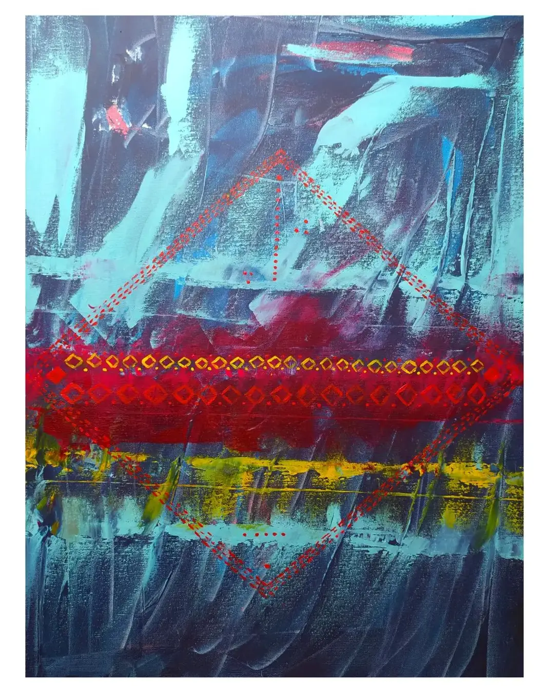 „Abstrakcja to moja ulubiona forma przekazu, gdyż nie narzuca odbiorcom interpretacji, a zachęca ich do refleksji. Medium, którego używam zazwyczaj, to farby akrylowe, często łączone z pastami strukturalnymi, pastelami olejnymi czy tuszami akrylowymi. Od lat interesuję się renowacją mebli i pracą z drewnem - lubię efekt mocnej faktury, często więc staram się przenosić to na swoje obrazy. Kolory, które wybieram, zależą od nastroju i tego, co chcę przekazać w momencie tworzenia danej pracy. Często jednak są to mocne i zdecydowane barwy".
