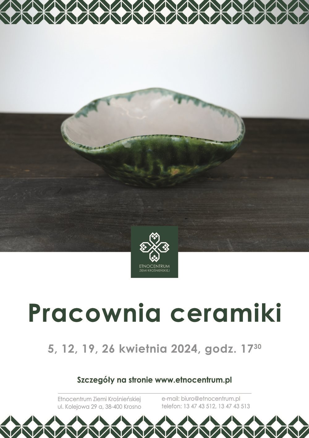 -> Pracownia ceramiki – piątki o 17:30 (05.04, 12.04, 19.04, 26.04) – zajęcia dla dorosłych