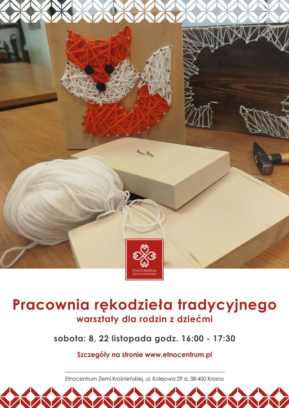 -> Pracownia rękodzieła tradycyjnego - warsztaty dla rodzin z dziećmi - soboty o 16:00 (8 i 22 listopada) - zajęcia dla dzieci z opiekunami (1 dziecko + 1 dorosły)