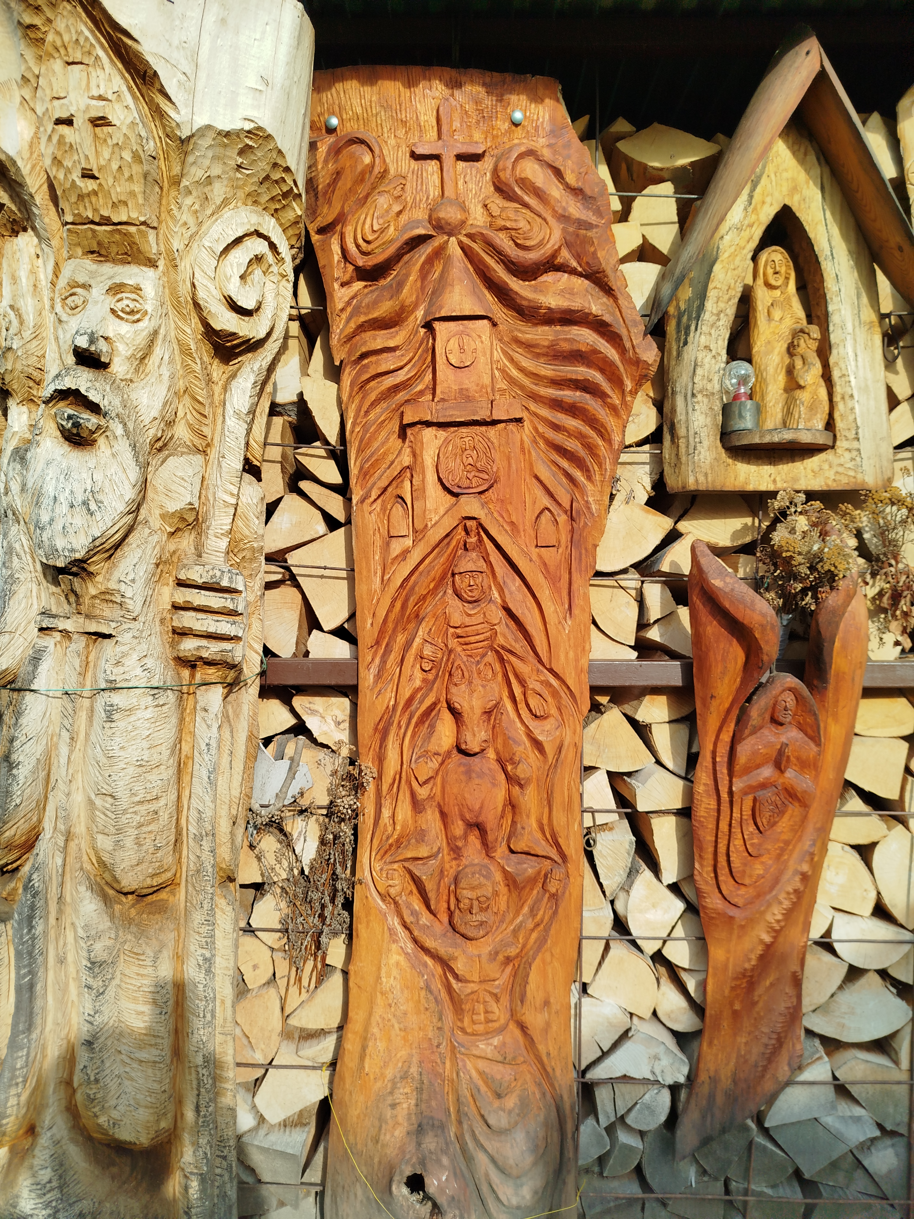 Domowy ogród Piotra zdobią rzeźby monumentalne, przedstawiające postacie świętych, królów i bohaterów narodowych takich jak Mieszko I, Bolesław Chrobry, Władysław Jagiełło, Jan III Sobieski, Kazimierz Wielki, Józef Piłsudski no i oczywiście św. Jan Paweł II. Jak mówi twórca tych dzieł, pasjonat historii „to kluczowe postacie naszej państwowości”.